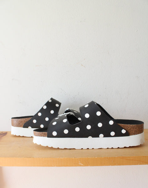 Birkenstock Papilliio Black & White Polka Dot Platform Sandals | Size 38
