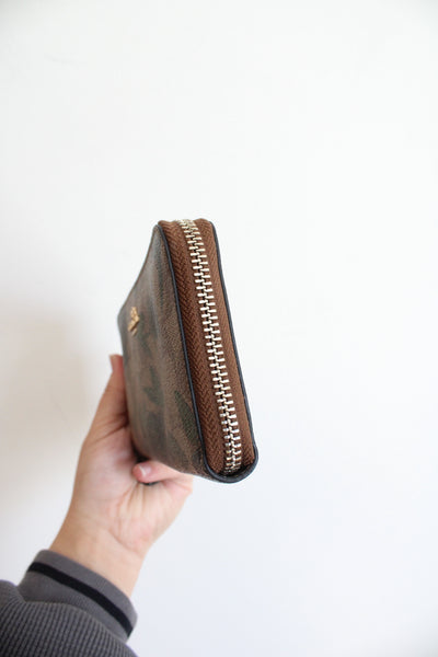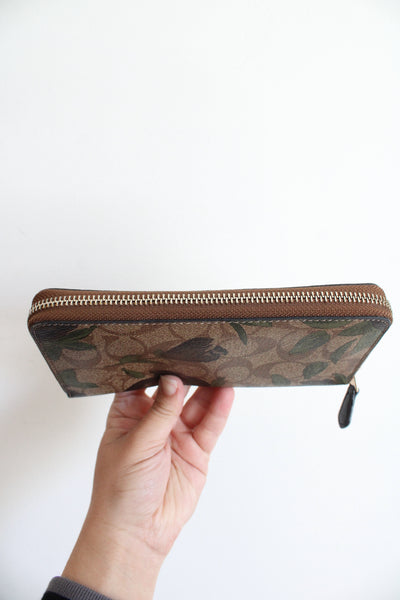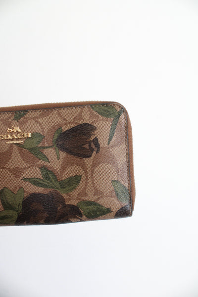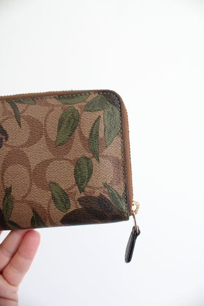 Coach Brown Wildflower Print Canvas Zip Around Wallet