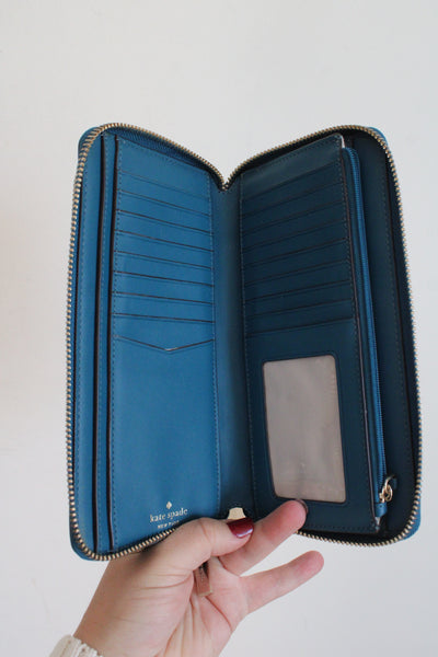 Kate Spade Staci Teal Large Carryall Wristlet Wallet