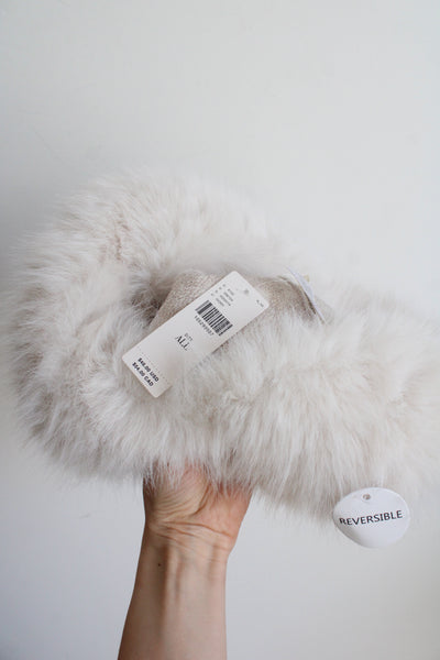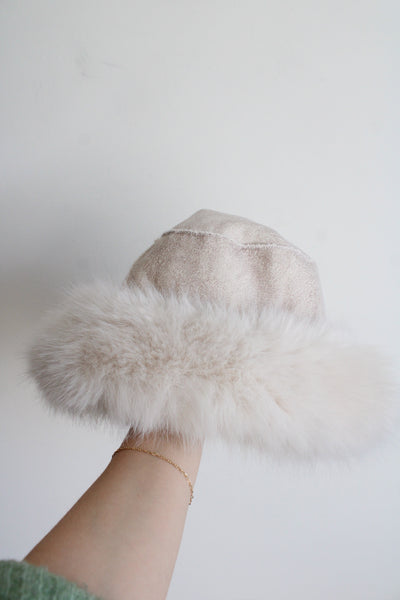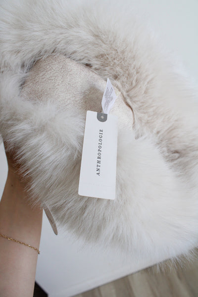 NEW Anthropologie Reversable Faux Fur/Suede Ivory Bucket Hat