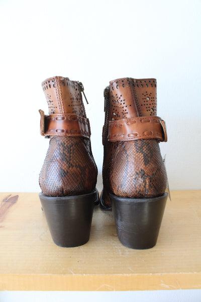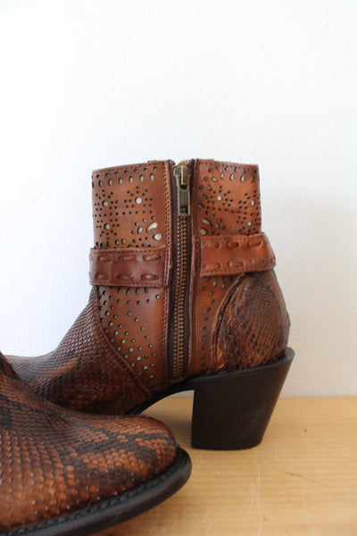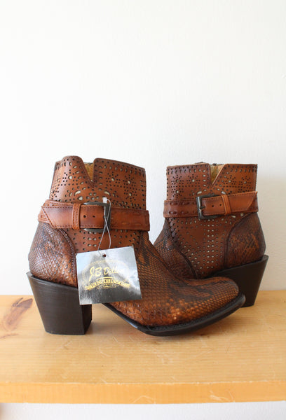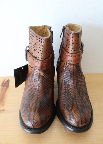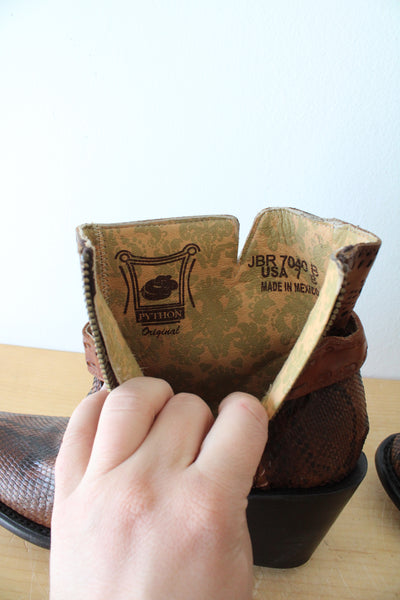 NEW J.B. Dillon Reserve Brown Python Skin Heeled Boots | Size 7B