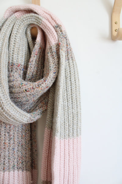 NEW J.Crew Pink & Tan Metallic Wool Blend Fringe Scarf