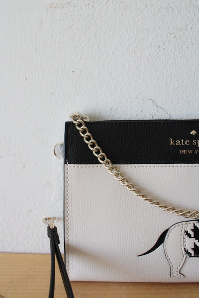 NEW Kate Spade Black & White Houndstooth Fetch Dachshund Wristlet Clutch
