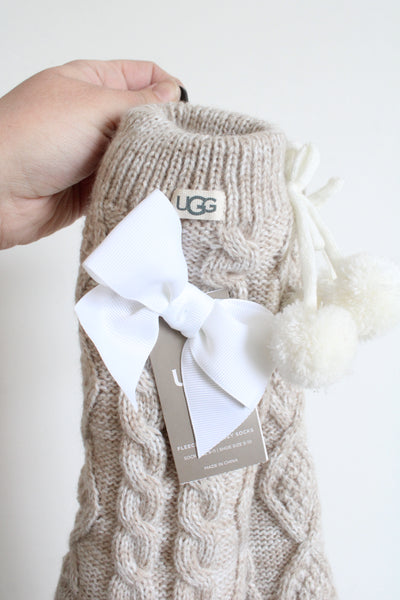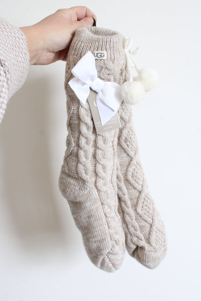 NEW Ugg Pom Pom Tan Fleece Lined Cozy Socks