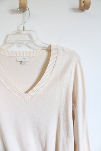 LOFT Cream Knit V-Neck Sweater | M
