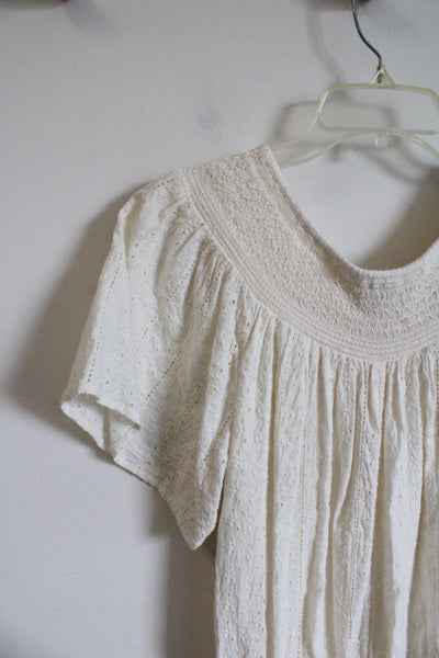 Old Navy Cream Eyelet Wide Neck Dress | M