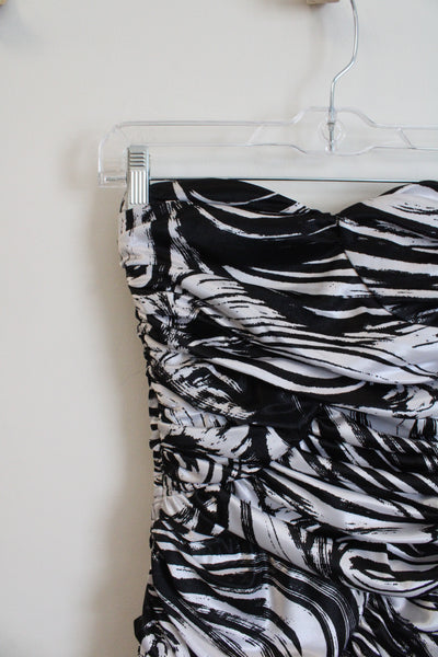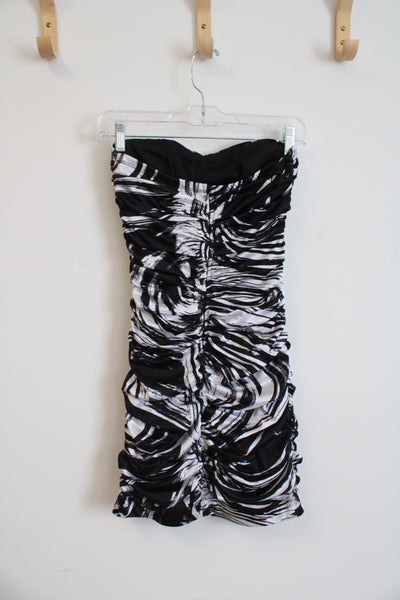 Arden B. Black & White Swirl Ruched Strapless Mini Dress | XS