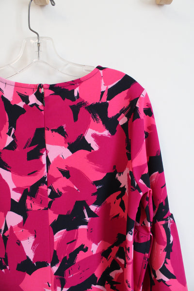 Banana Republic Pink & Navy Patterned Bell Sleeve Shift Dress | S