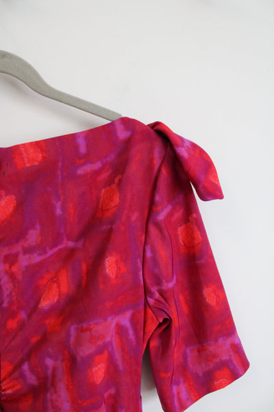 Kay Unger Fuschia Orange Patterned Boat Neck Sheath Dress | 10