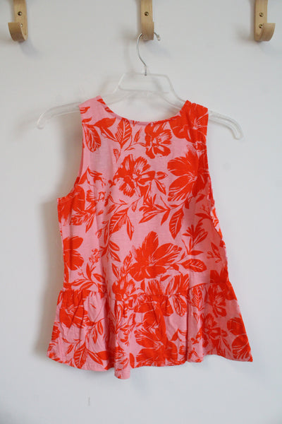 NEW LOFT Pink & Orange Floral Peplum Tank Top | XXS Petite