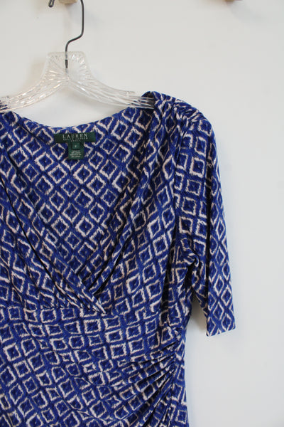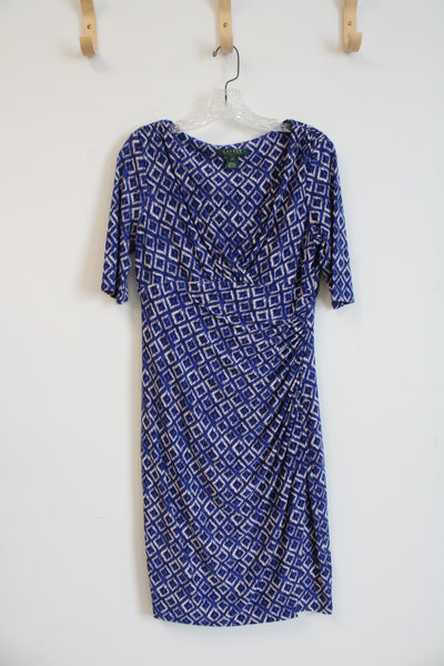 Ralph Lauren Blue & Tan Square Patterned Ruched Dress | 8