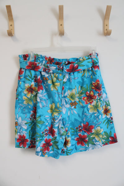 Ruby Rd. Blue Tropical Pattern Belted Shorts | L