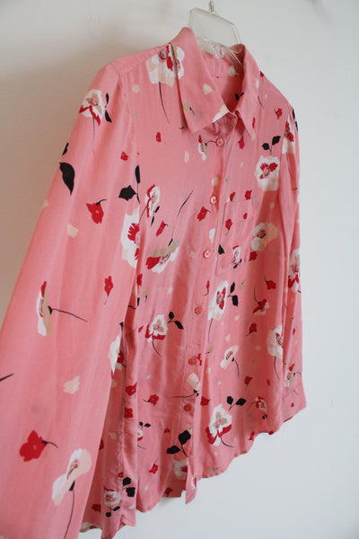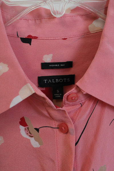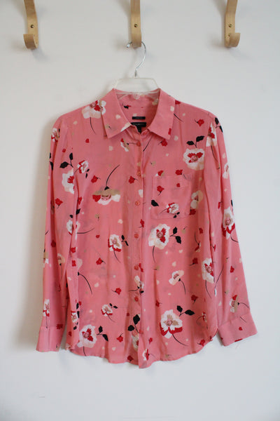 Talbots Pink Floral Button Down Silk Top | S