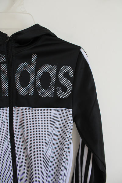 Adidas Black & White Dotted Full Zip Jacket | Youth M