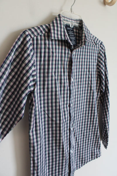 Izod Blue Green & Red Plaid Button Down Shirt | Youth 12