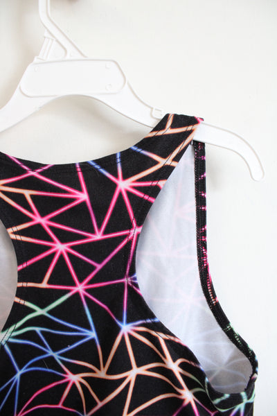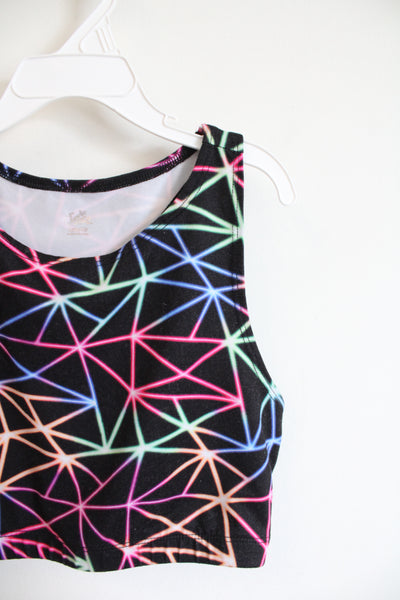 Justice Black Patterned Cropped Tank Top | Youth L (12/14)