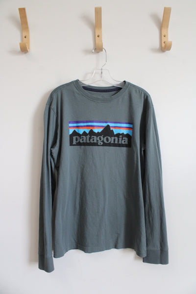 Patagonia Dusty Blue Logo Long Sleeved Shirt | Youth XL (14)