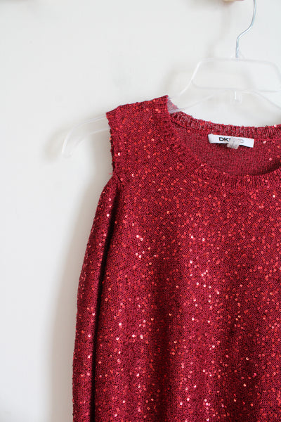 DKNYC Red Sequined Cold Shoulder Long Sleeved Top | M