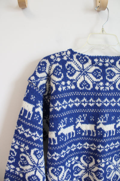 Vintage Geilo Husflid Blue & White Handknitted Wool Sweater | M/L