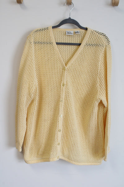 C.J. Banks Butter Yellow Crocheted Cardigan Sweater | 2X