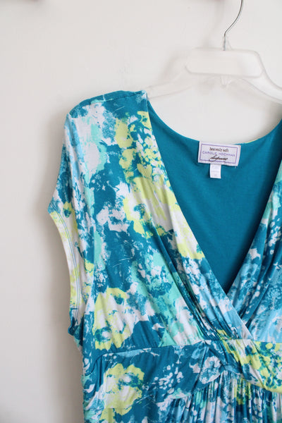 Carole Hochman Heavenly Soft Blue Yellow & White Patterned Knit Maxi Dress | 1X