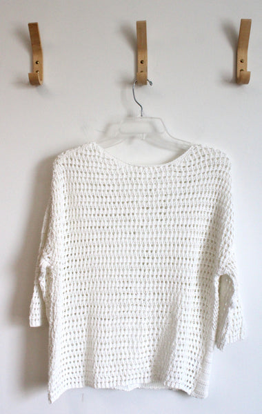LOFT Outlet White 3/4 Sleeves Lounge Crochet Top | M