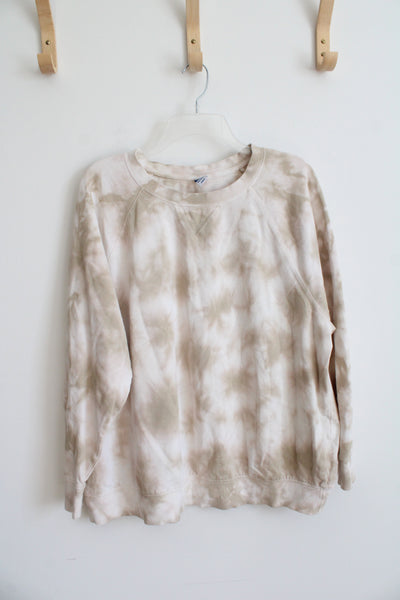 Old Navy Tan & White Tie-Dyed Crewneck Sweatshirt | 2X