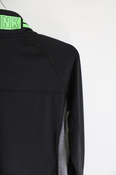 Pink Ultimate Black Gray & Green 1/4 Zip Sweatshirt | M