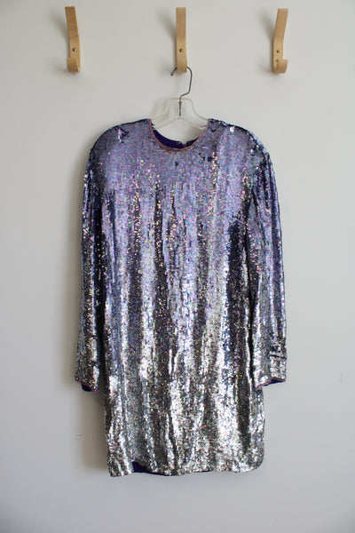 Vintage Naeem Khan Neiman Marcus Purple Sequined Silk Dress | 14