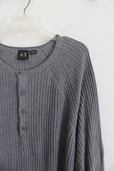 Armani Exchange Gray Ribbed 1/4 Button Long Sleeved Shirt | XXL
