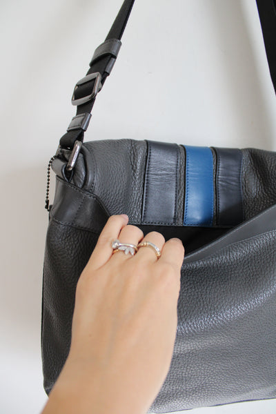 11" wide, 10" tall, 2 1/2" deep, adjustable crossbody strap