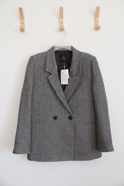 NEW Anine Bing Black & White Herringbone Double Breasted Blazer | M