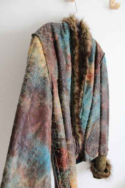 NEW Lee Anderson Faux Fur Dyed Animal Print Fur Trimmed Jacket | S