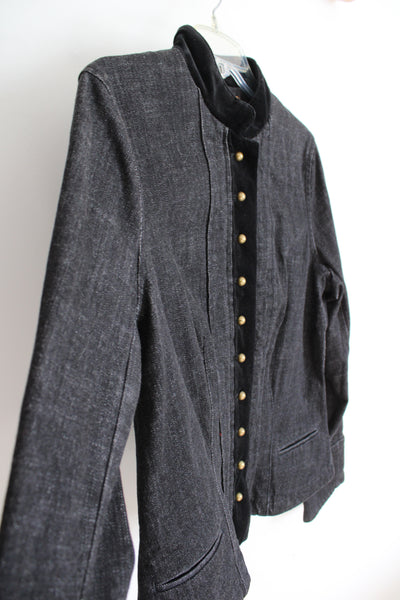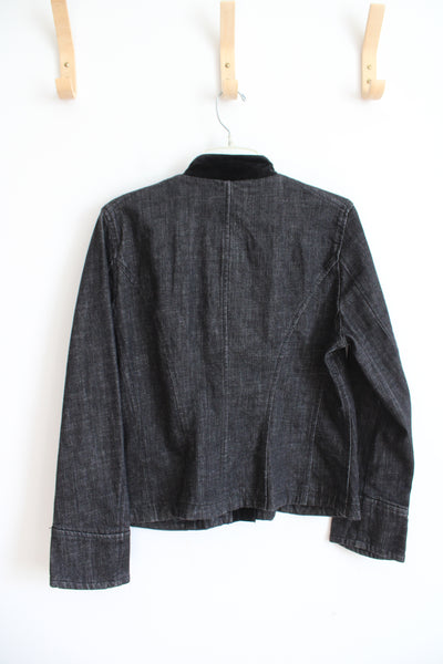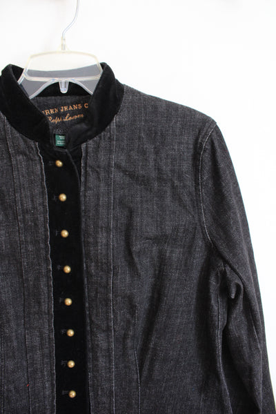 Ralph Lauren Lauren Jeans Co. Vintage Velvet Collared Black Denim Jacket | L