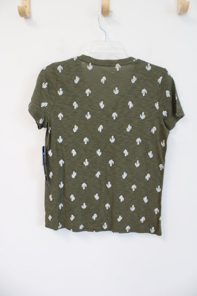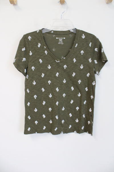 NEW Architect Cactus Print Olive Green V-Neck Top | S Petite