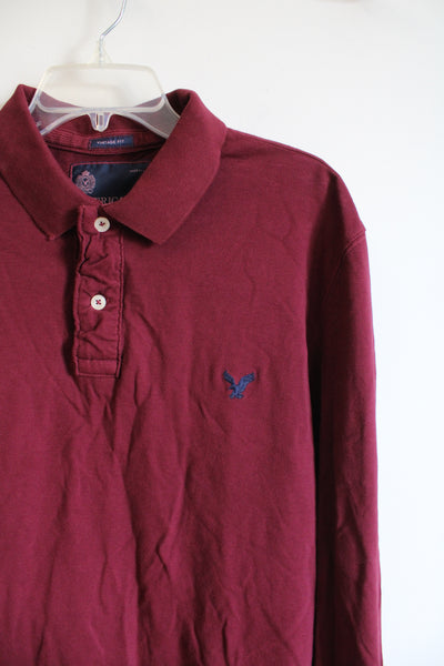 American Eagle Vintage Fit Maroon Collared Henley Shirt | XXL