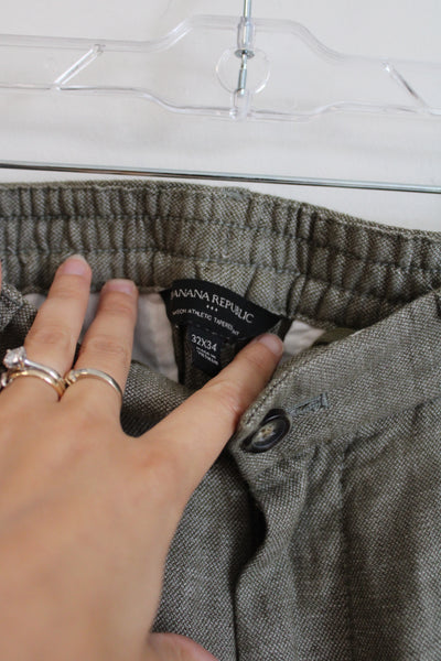 Banana Republic Linen Blend Mason Athletic Tapered green Pant | 32X34