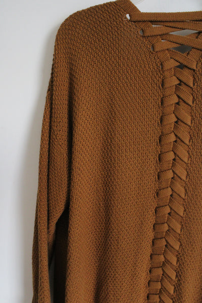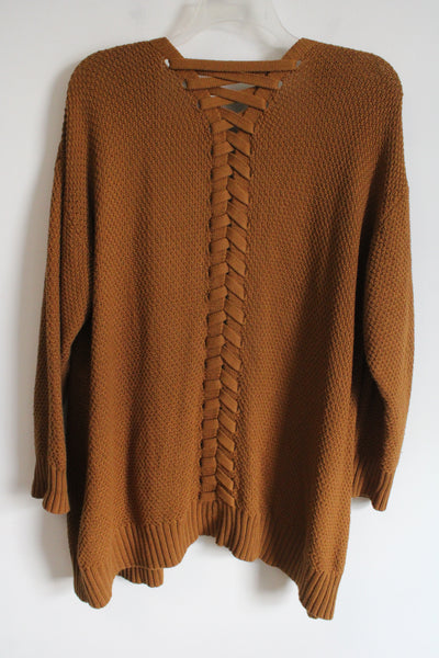 Lisa Rinna Collection Yellow Brown Knit Cardigan | XL