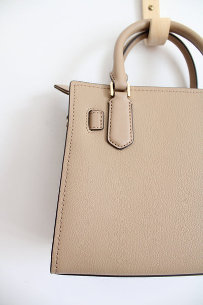 Small marks on the bottom (see picture), but otherwise in great condition. No odors. Gold hardware.