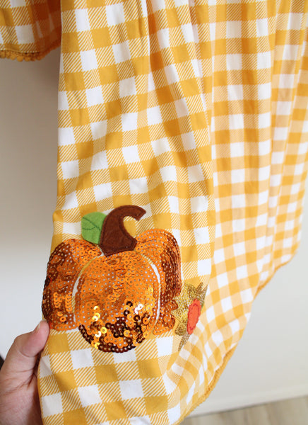 Rare Editions Yellow & White Plaid Pumpkin Sequined Dress | Youth 10