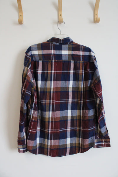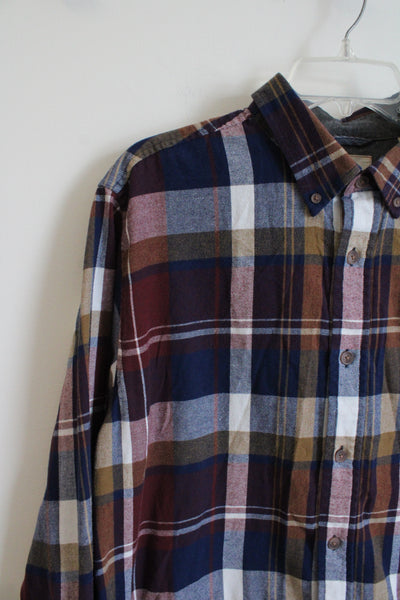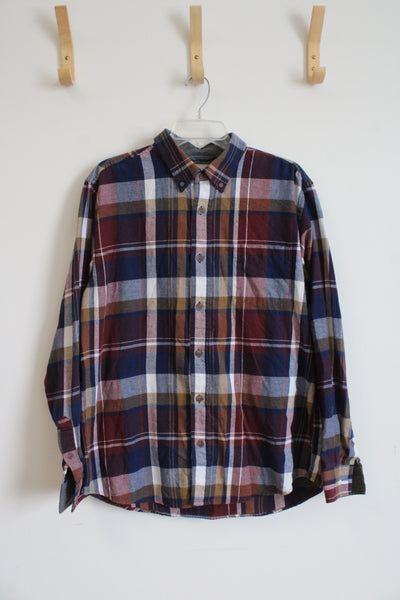 Weatherproof Vintage Maroon Brown Blue & White Plaid Flannel Shirt | L
