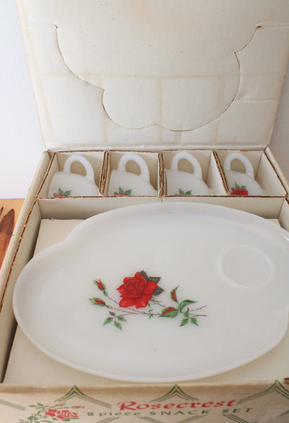 One of the mugs has a small crack in it (see picture) but otherwise there are no chips. In great condition.