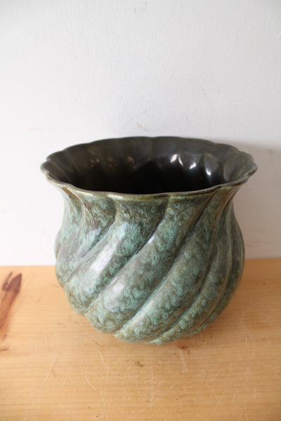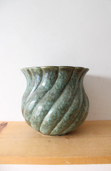 Haeger Green Glazed Ribbed Ceramic Vase | 8" tall