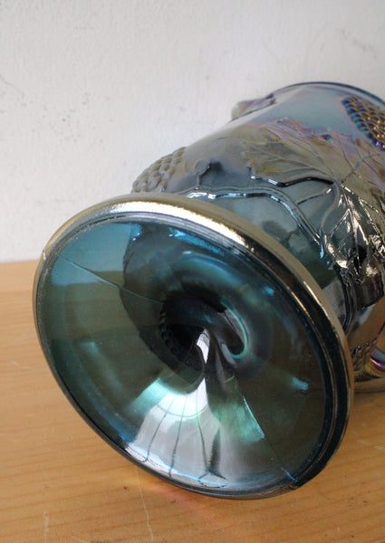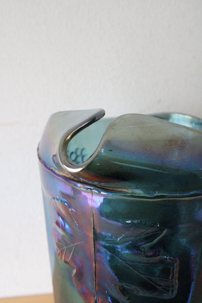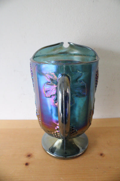 Indiana Glass Vintage Harvest Grape Blue Iridescent Carnival Glass Pitcher