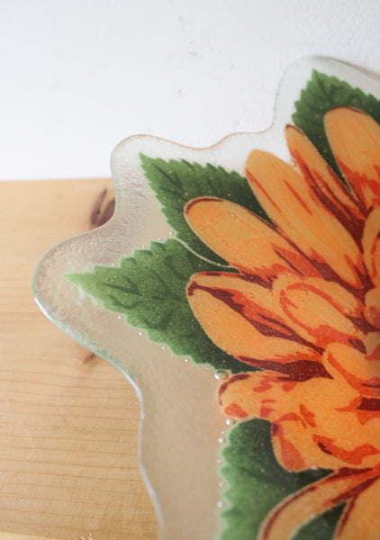 Orange Chrysanthemum Hand Blown Large Glass Bowl