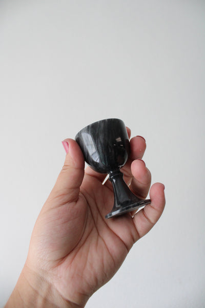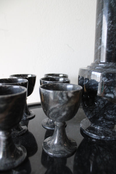Vintage Black Gray Marble Sake Decanter & Mini Goblet Tray Set