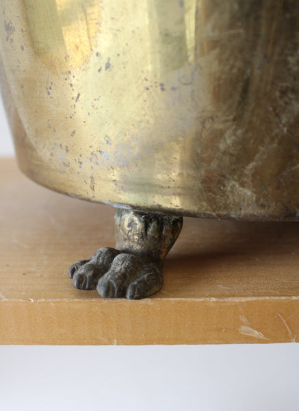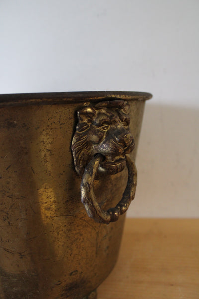 Vintage Brass Lion Handled Footed Planter