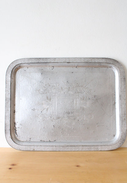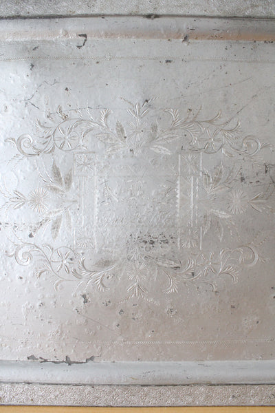 Vintage Hammered Aluminum Etched A.R.E. Dec. 25 1894 Tray