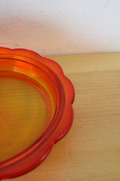Vintage L.E. Smith Moon & Stars Amberina Round Butter Dish