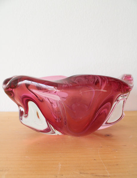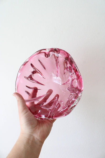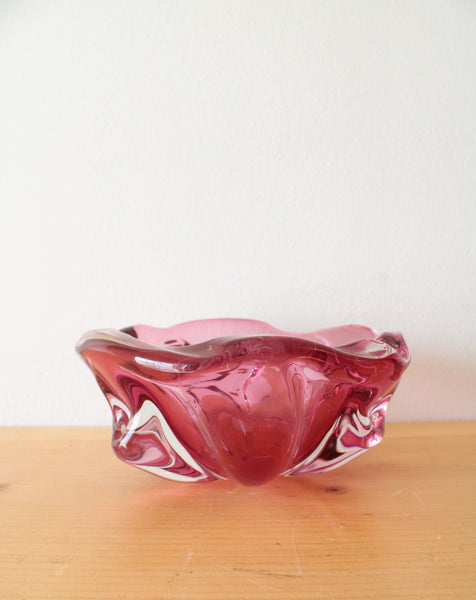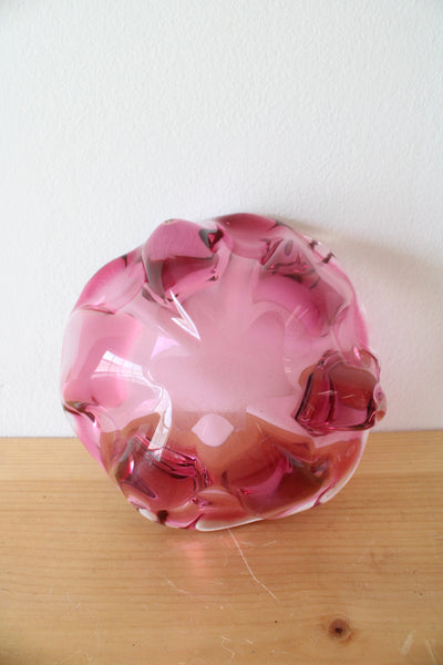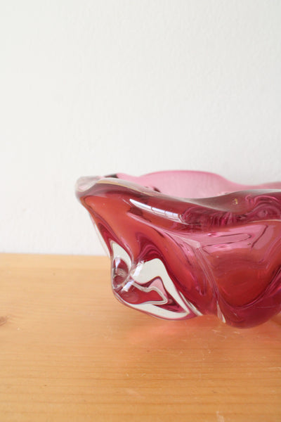 Vintage Pink Wavy Edged Glass Bowl